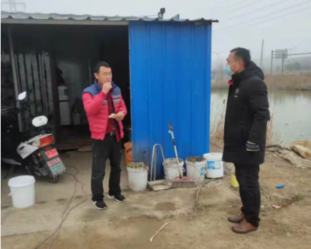 共產黨員趙紹慶和朱文金在疫情期間,除了參觀社區(qū)志愿活動,進行卡口值勤和衛(wèi)生消毒外,還每天往返于公司各閑置土地之間。他們頂著寒風,穿梭于池塘地頭間,向即將清退的養(yǎng)殖戶宣傳公司和清退政策,幫助人手不夠的養(yǎng)殖戶對養(yǎng)殖塘附近進行全面環(huán)境消殺,幫助即將退出離開的養(yǎng)殖戶清理各類物資,幫助他們把需要帶走的物品整理歸類,以便盡早搬走,騰出池塘方便開發(fā)區(qū)征收。