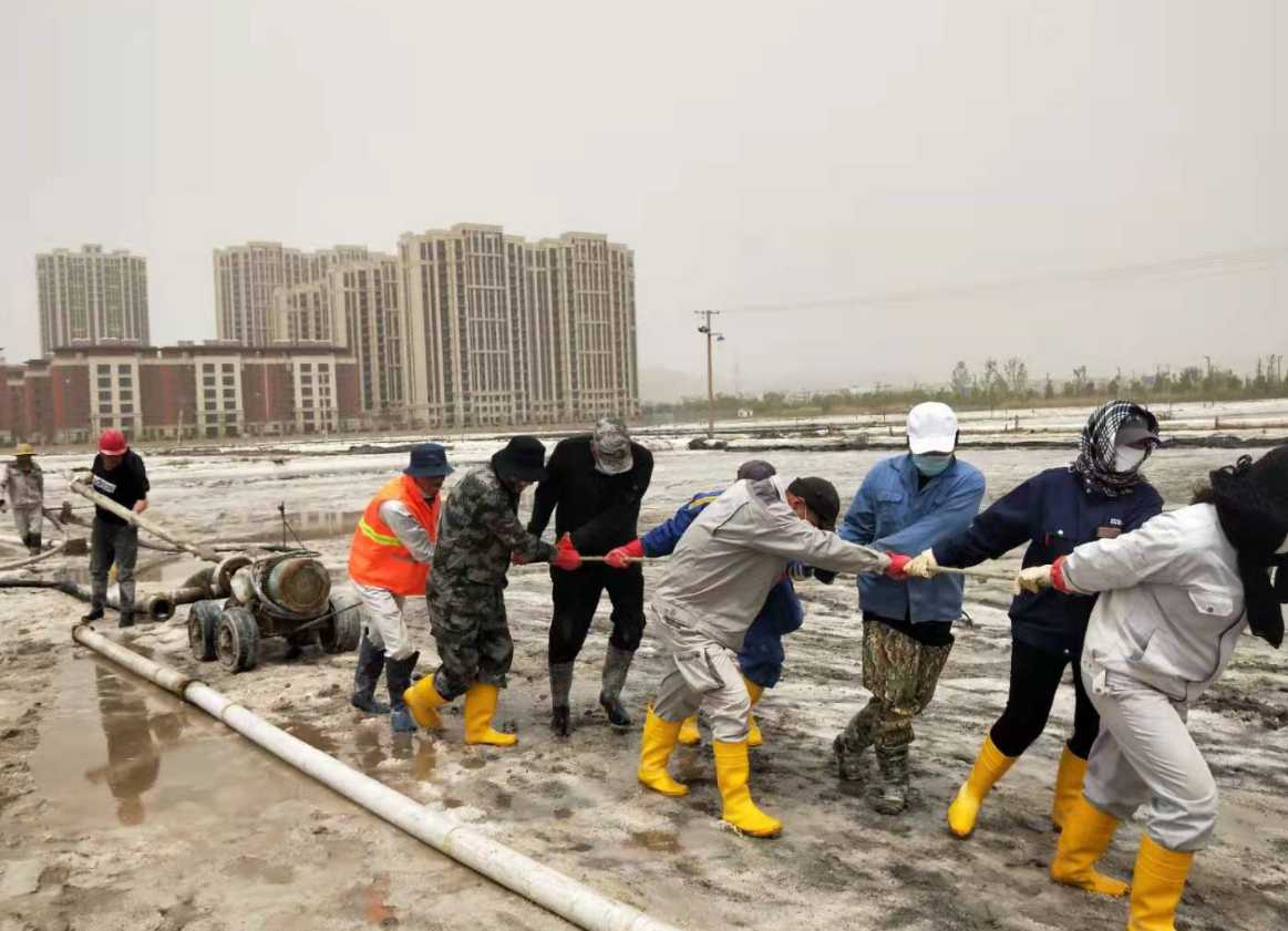 “百日會戰(zhàn)”完美收官,大家以黨史學(xué)習(xí)教育為精神動力,弘揚(yáng)“四再”創(chuàng)業(yè)精神,淬煉“四拼”工作作風(fēng),展現(xiàn)出強(qiáng)有力的政治責(zé)任感和歷史使命感,在廣袤的鹽田上,用勤勞的汗水譜寫“四個(gè)最”的美麗華章。開局最早,搶抓春景好時(shí)光,開創(chuàng)歷史最早記錄,“破天荒”地從大年初十開啟扒鹽。戰(zhàn)線最長,以西灘機(jī)械扒鹽為起點(diǎn),歷經(jīng)東灘、大八組、海濱人工扒鹽,二組、西灘雙線齊上、火力全開,至東灘機(jī)械扒鹽落下帷幕,實(shí)現(xiàn)了“漫漫長征路”的圓滿勝利。歷時(shí)最久,整整百日一舉打破扒鹽歷時(shí)最久記錄,從冷冽刺骨的寒風(fēng),到烈日當(dāng)空的火熱,從臃腫的棉襖,到清涼的短袖。困難最多,面對天時(shí)不利的氣象條件,面對著堿廠關(guān)停的嚴(yán)峻局勢,面對著環(huán)保安全的巨大壓力,面對著人手不足的現(xiàn)實(shí)問題,團(tuán)結(jié)一心,攻堅(jiān)克難,迎接挑戰(zhàn),眾志成城筑鹽山,“暑霜春雪”顆粒盡歸倉。
