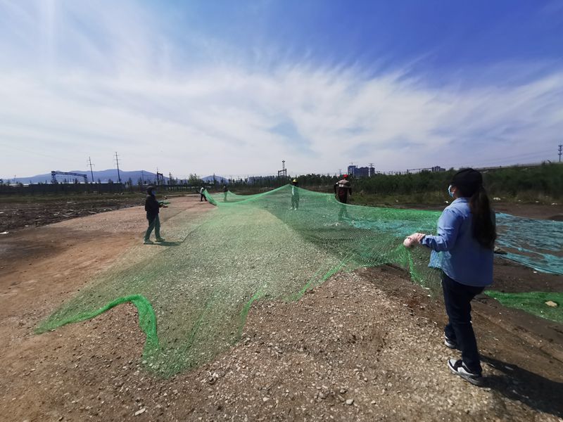 “啦啦啦,我們都是鋪網手,鋪網本領強”在海州灣車站小攤,資源分公司全體職工和公司團委組織的青年員工唱著歌,哼著曲,僅僅只用了一上午,就完成了100多畝小攤的裸露土地的防塵網鋪設工作,“小伙伴”們擦著汗,喝著水表示“鋪網,我們是專業的”。