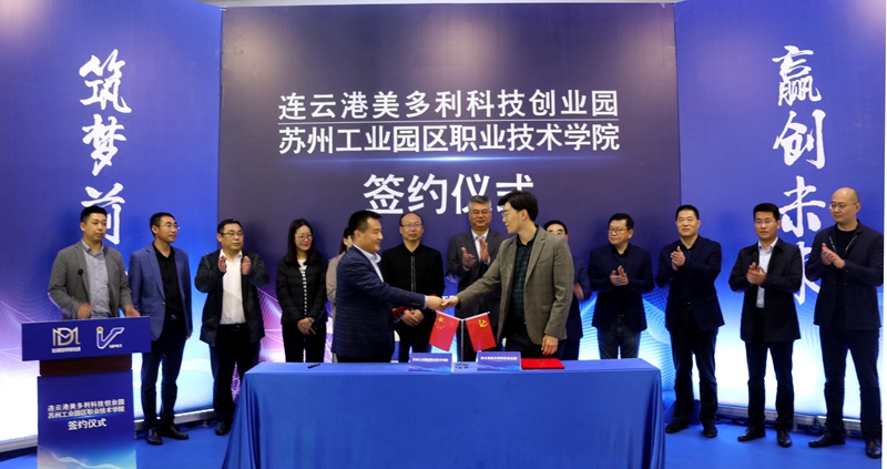 5月11日,投資公司美多利科創園與蘇州工業園區職業技術學校“產教融合”項目簽約儀式在“海客”眾創空間隆重舉辦。開發區教育工委委員、社會事業局教育處處長劉益國等領導,蘇州工業園區職業技術學院繼續教育學院院長魏剛等校方代表,投資公司全體領導班子,美多利公司全體領導班子參加了簽約儀式。