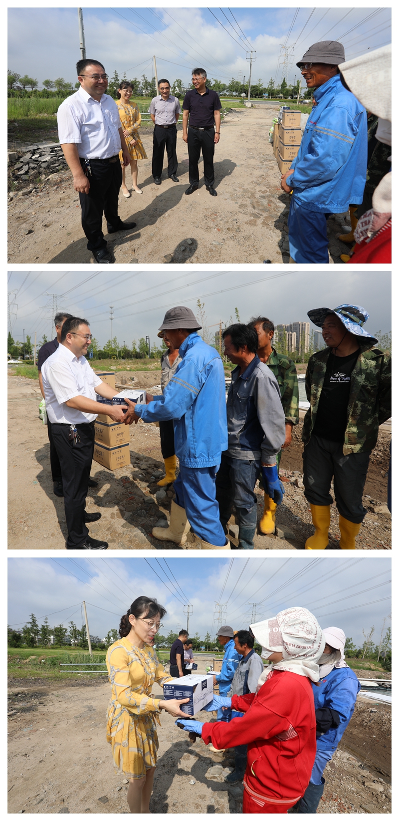“大家辛苦了!天氣炎熱,注意防暑”“要避開高溫時段作業,靈活調增上班時間,身體才是第一位”楊龍董事長和汪群書記將防暑消暑物品送到生產現場每一位職工手里,同時關切叮囑大家注意身體,做好防暑工作。