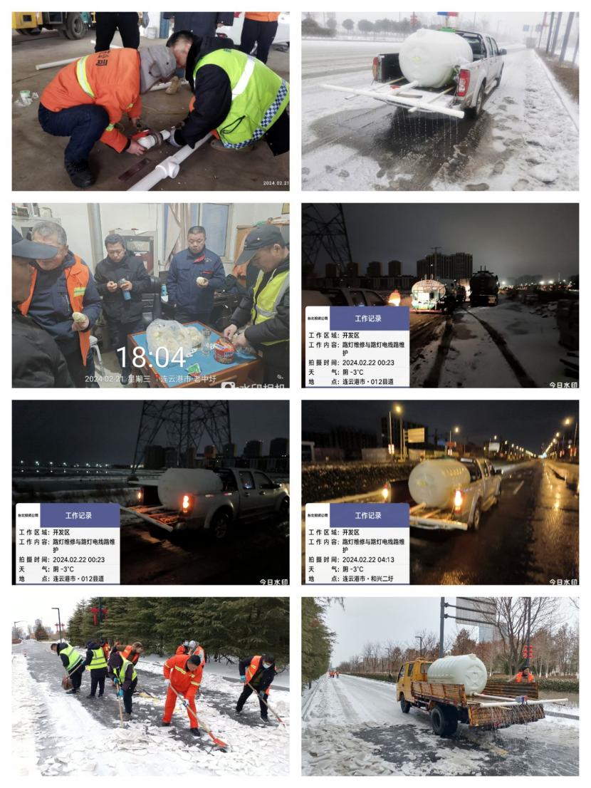 21日夜晚降雪漸止,該黨支部出動四臺車輛,按照設計好的路線多次往返于花果山大道、黃海大道、東方大道等開發區范圍內主次干道噴灑融雪劑。在公司負責人的帶領下,已連續3日吃住在單位靠前指揮,參加一線掃雪除冰活動。喬以成、袁桂誠等老同志隨車同行隨時解決技術難題保障除冰工作順利進行。由于路面積雪嚴重需要一便又一便的拋灑,該黨支部又合理安排人員車輛上半夜和下半夜不間斷噴哂保障路面不結冰,全體黨員干群頂著寒風、排隊抽取防凍液時踩著光滑結冰的路面在低溫下瑟瑟發抖,為了第二天人們的順利出行他們也是拼盡了全力,再一次展示了鐵軍的光輝形象。