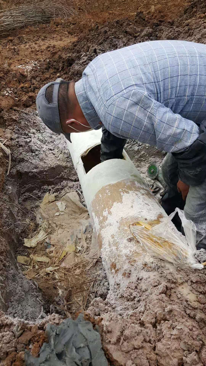 然而,玻璃鋼管道的修補在技術上要求比較嚴格!修補工藝看似簡單,其實如果不深入了解和充分掌握樹脂膠的性質、用途、以及促進劑,固化劑的配比率,混合工藝等要求的話是不行的。當今世界上有一百多種樹脂膠,按使用情況要求的不同進行合理選擇。(我們就曾經錯把用作鋼管表面做防腐涂層的樹脂膠購買來維修玻璃鋼管道。結果,修補的接頭與原管材料不是同一種性質的,兩者間發生了不能相融的化學反應,最終還是脫膠漏水。)更加苛刻的是樹脂膠絕對不溶于水。操作時如果不慎滴入一滴汗水的話,在管道修補表面上就會出現硬幣大小的空殼,使得經過樹脂膠涂覆的無堿布與原管體間產生空隙,在管道打水時管內高達1.0MPa壓力的作用下形成漏水點。而我們的鈣液管道都是正常投入使用的在用管道,管道里滿是鈣液鹵水,這更是給管道修補技術難上添難。