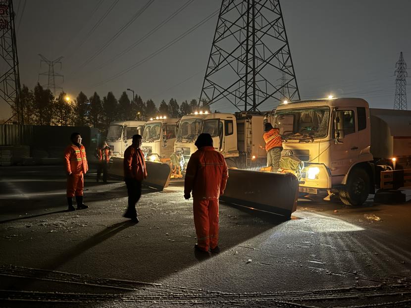 “搖人,快搖人”。環衛分公司迅速響應并于凌晨101分緊急啟動掃雪除冰應急預案,全力以赴迎戰風雪。