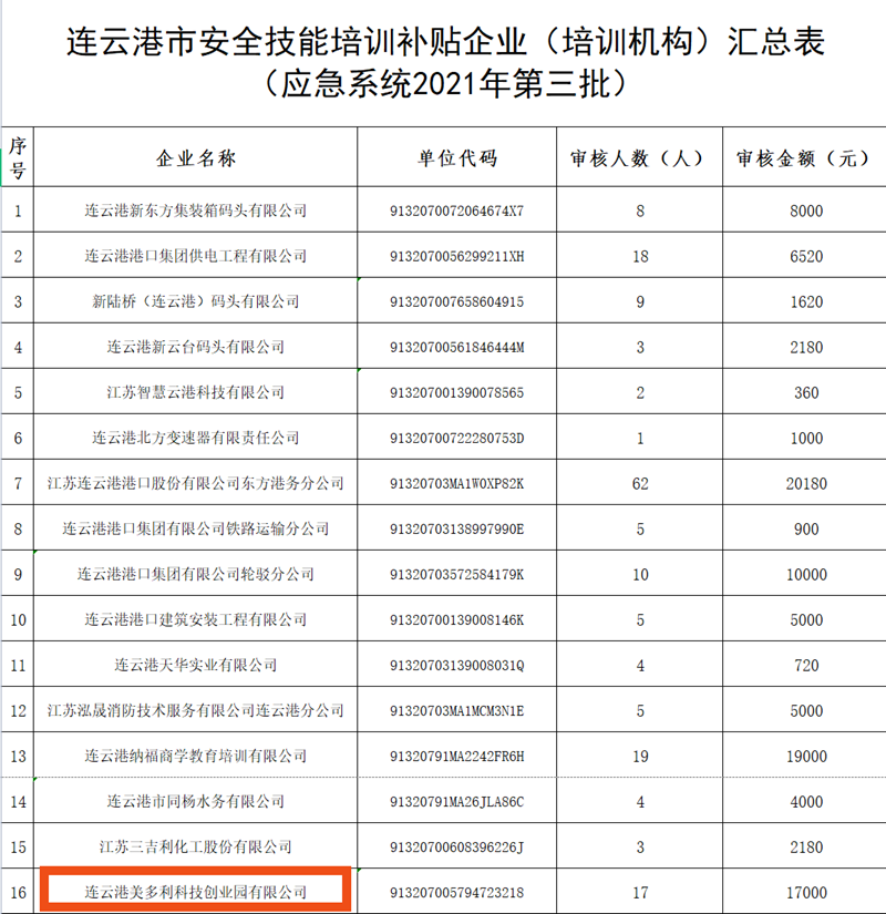 近日,美多利公司首批職工培訓(登高證)補貼已經在連云港人力資源和社會保障網,公司培訓業務的“第一桶金”即將就位。
