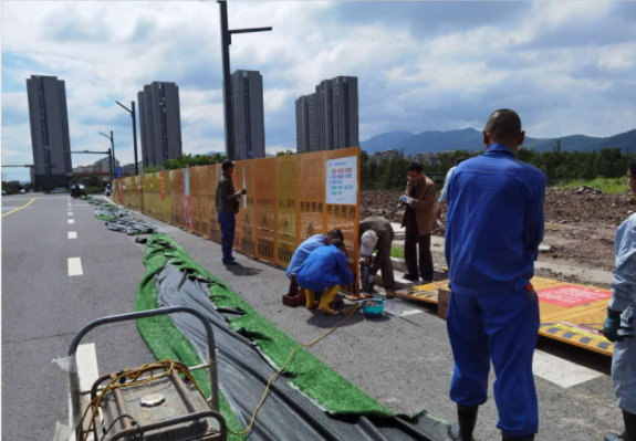 昨日,受大風天氣影響,東晉路上的隔離欄傾倒,該路段恰好處于市創文創衛的巡檢路線上。當天晚上接華茂公司通知,翔立分公司鐵軍“臨危受命”,承接圍欄搶修復原固定工程,共有18名員工早上6點冒著蒙蒙細雨在施工現場投入搶修,大理石路牙石背面用膨脹螺絲焊接一一將隔離欄用支撐架固定,該工程限期在兩日內完工。