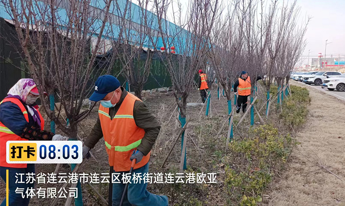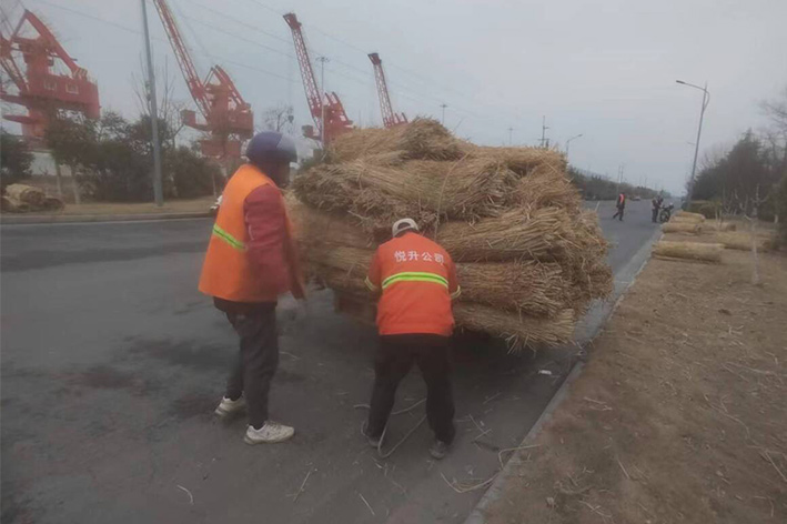 實(shí)時(shí)拆除防寒設(shè)施。隨著氣溫的逐漸升高,為使苗木更好、更快的返青,前期瑞南二個(gè)綠化班組緊鑼密鼓,積極準(zhǔn)備,搶抓時(shí)機(jī),3月中旬對(duì)云港路、金港路、228等道路兩側(cè)夾竹桃等綠植防寒草簾進(jìn)行拆除工作,并對(duì)去冬枯枝干葉安排修剪。