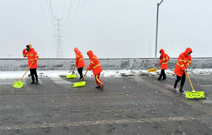 大家頂風(fēng)冒雪,團(tuán)結(jié)協(xié)作,配合默契,使勁揮動(dòng)著自己手中的工具,掃雪的掃雪、鏟冰的鏟冰、清運(yùn)的清運(yùn),現(xiàn)場(chǎng)一派熱火朝天的繁忙景象。手臉凍得通紅、身上濺滿(mǎn)雪泥、鞋襪也被浸濕,但大家絲毫不在意,干勁十足地攻克了一寸寸雪障堅(jiān)冰。連日來(lái),突擊隊(duì)集中開(kāi)展3次清雪除冰行動(dòng),清理道路面積達(dá)2萬(wàn)余平方米。
