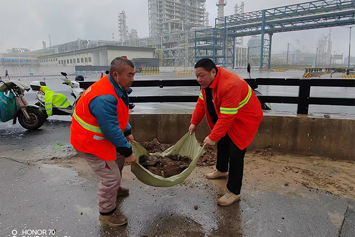 12月13日夜里,受北方冷空氣影響,徐圩地區(qū)普降中雨。為保障石化園區(qū)冬季道路周邊環(huán)境整潔靚麗,園區(qū)近10余名黨員先鋒無懼風(fēng)雨,樂于奉獻(xiàn)堅(jiān)守道路最前沿,風(fēng)雨中彰顯黨員敬業(yè)高尚風(fēng)采。